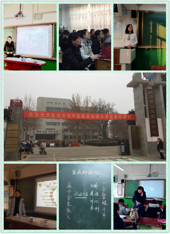 为引领临清教育系统广大教师改变教学理念,创新教学方式,运用多媒体教学手段,深化教学改革,我市举办多媒体课堂教学大赛,各初中校长、业务校长带头参加,在全市形成浓厚的学新知,用新知,不断创新,不断提高的学习和研究教育教学的氛围。