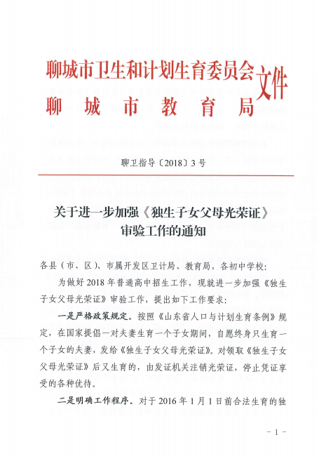 关于进一步加强《独生子女父母光荣证》审验工作的通知