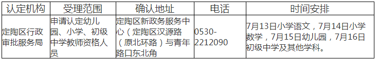 2021年菏泽定陶县第二批次中小学教师资格认定公告
