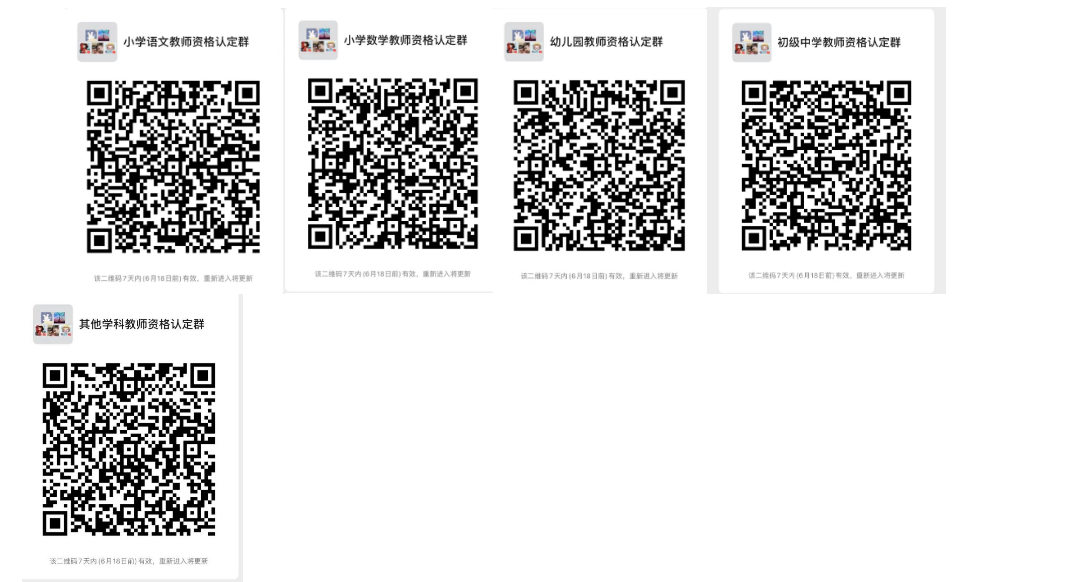 (四)为进一步提高教师资格认定效率,解答申请人在认证过程中遇到的问题,请申请幼儿园、小学、初级中学教师资格的人员分别进入相应的微信群。