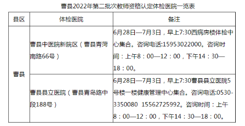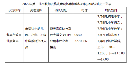 2022年菏泽曹县第二批次中小学教师资格认定公告
