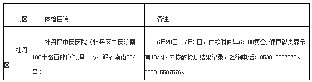 菏泽市牡丹区2022年第二批次教师资格认定体检医院