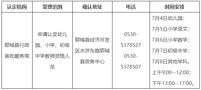 2022年菏泽郓城县第二批次中小学教师资格认定公告
