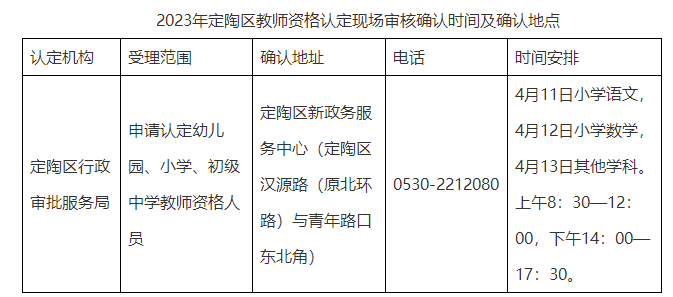 2023山东菏泽市定陶区中小学教师资格认定公告