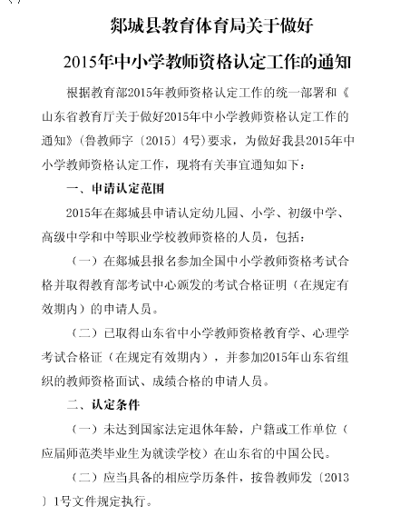 2015临沂郯城县教育体育局关于做好中小学教师资格认定工作通知