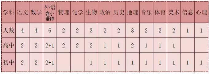 注:1.外语初、高中各需一名小语种教师