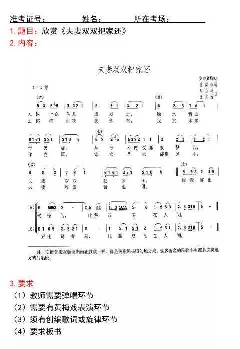 初中音乐·面试备课纸