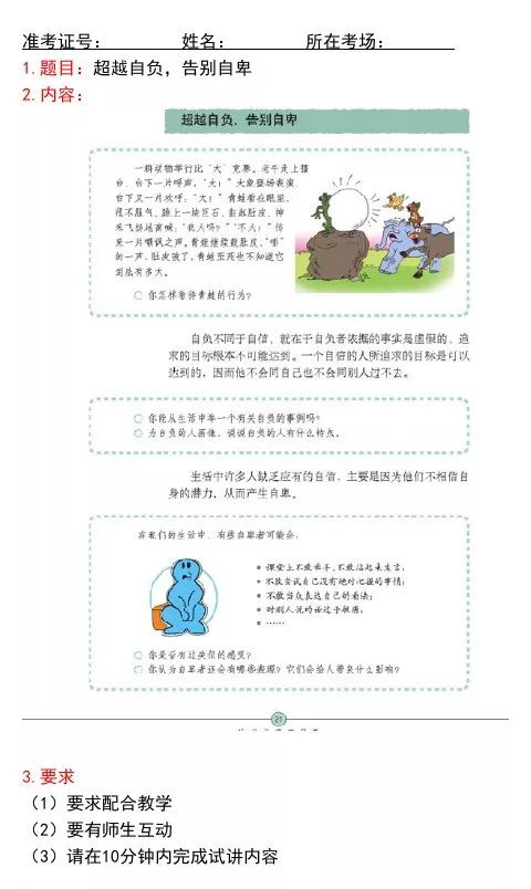 【导读】大家都知道山东初中教师资格证面试分为结构化问答+试讲+答辩,那么山东初中教师资格证面试试卷是否和笔试试卷一样会有多道题?试卷长什么样子呢?请看山东教师资格网为大家解答。