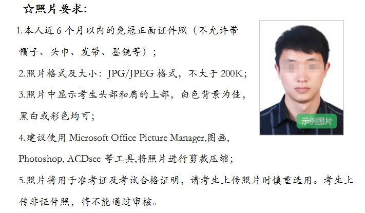 5.所有考生笔试报名前需要重新进行注册、填报个人信息并上传个人照片,重新注册操作不影响考生已获得的成绩。注册上传照片将用于准考证和考试合格证明,请考生上传照片时遵守规范、慎重选用。