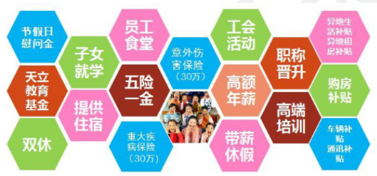 1.人事保障:按国家规定购买“五险一金”,并特别为每位教师购买60万元商业保险(包括意外伤害险和重大疾病险)。享受国家规定的带薪产假、病假和丧假等福利以及寒、暑假。